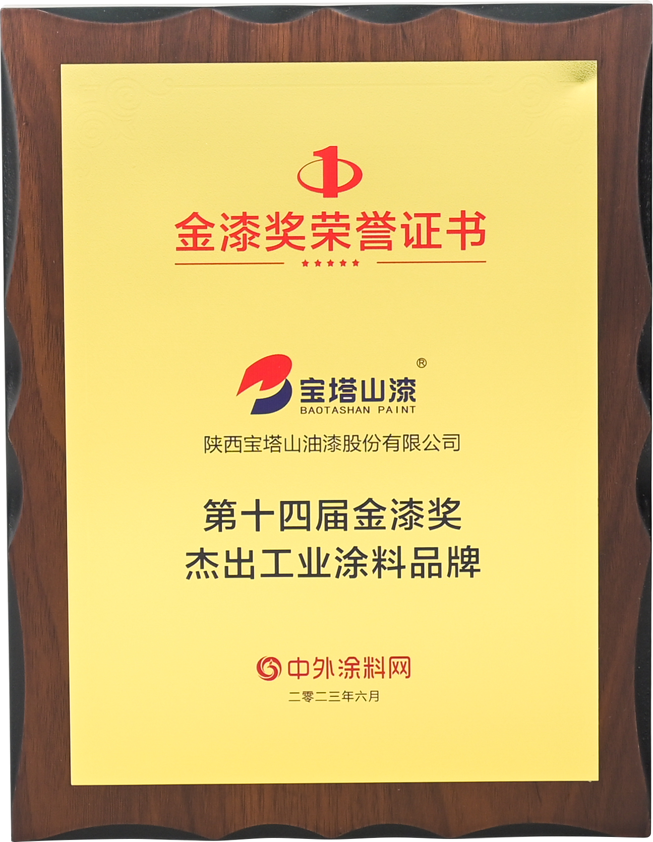 2022年6月,寶塔山漆榮獲第十三屆金漆獎“杰出工業(yè)涂料品牌”。